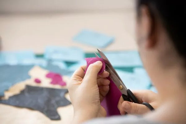 Inspiriert von deinen ausgewählten Farben, dem bezaubernden Motiv und dem individuellen Namen, nehmen unsere talentierten Handwerker:innen die Schere in die Hand. Mit größter Sorgfalt und Präzision schneiden sie jeden einzelnen Bestandteil unserer Krabbelschuhe zu. Hierbei kommt ihr handwerkliches Geschick und ihre Expertise zum Einsatz. Denn ein perfekter Zuschnitt ist die essentielle Grundlage für das ultimative Endergebnis. Jeder Millimeter zählt, denn nur so entsteht ein Schuh, der in Sachen Passform und Qualität überzeugt.